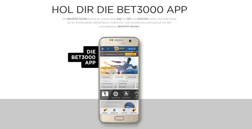 Wer sich für den renommierten, deutschen Sportwetten Anbieter Bet3000 entscheidet, muss indes mit keinerlei Beeinträchtigungen rechnen. Im Gegenteil, Bet3000 präsentiert ihnen das mobile Wetten par excellence. Denn ab sofort stehen sogar mehrere Sportwetten-Apps bei Bet3000 zur Verfügung – mit brandneuen Funktionen und maßgeschneidert für die Bedürfnisse der einzelnen Kunden.